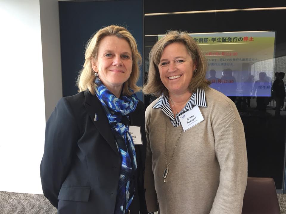 Hilde C. Bjørnland (L, former President) and Kristin Scheyer (R, Administrative Contact for SNDE) at the SNDE 2018 at Keio University, Tokyo